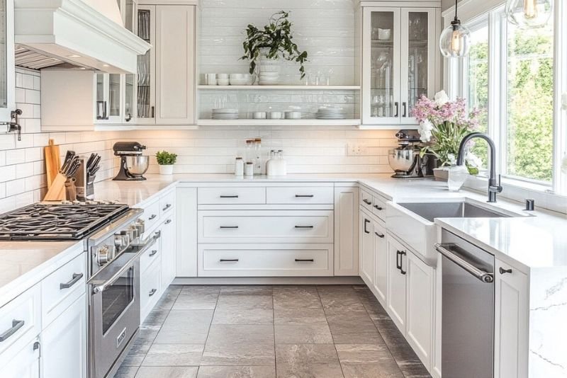 The L-shaped kitchen is one of the most popular layouts for modern homes. It uses two walls to create a natural work triangle, making it very easy to move between your stove, sink, and fridge while cooking.