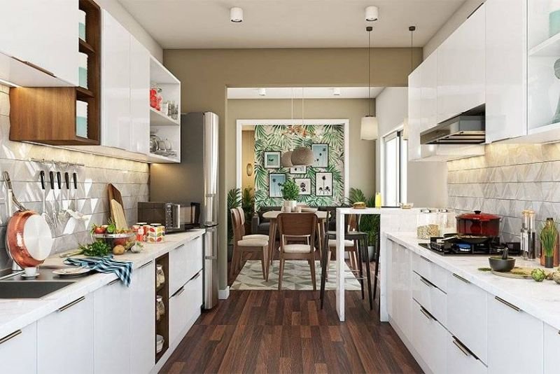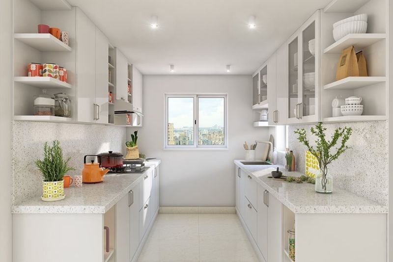 For homes with more room, our island and parallel kitchens add a luxury feel. An island gives you extra space for chopping or quick meals, while a parallel kitchen provides two long counters for a very organized workflow. These layouts make your kitchen look wide and very modern.