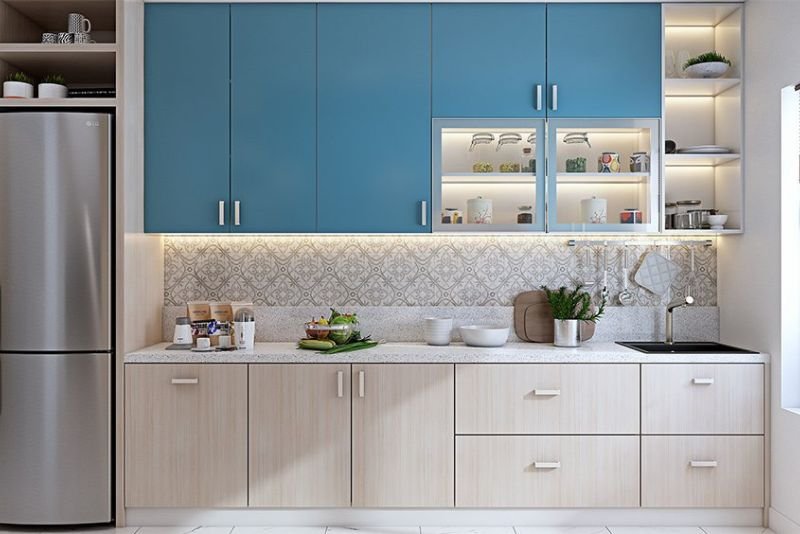 The straight kitchen is the best choice for small apartments or studio homes. All your cabinets and appliances are placed along one single wall. This simple design makes your kitchen look very neat and saves a lot of floor space.